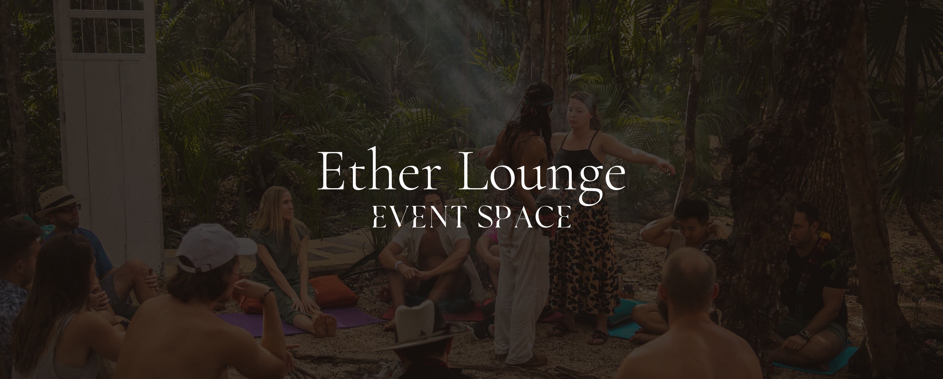 The ground level of the Ether Lounge takes up 53 square meters (570 sq ft) of air conditioned space and includes a 55 inch flat screen television. The perfect space for Masterminds and Yoga retreats alike.